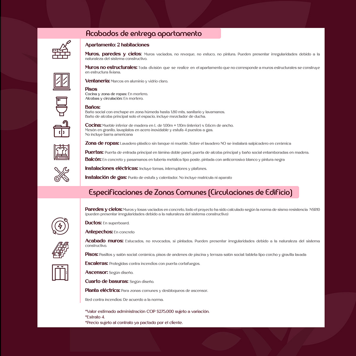 * Valor estimado de administración COP $275.000 (sujeto a variación).