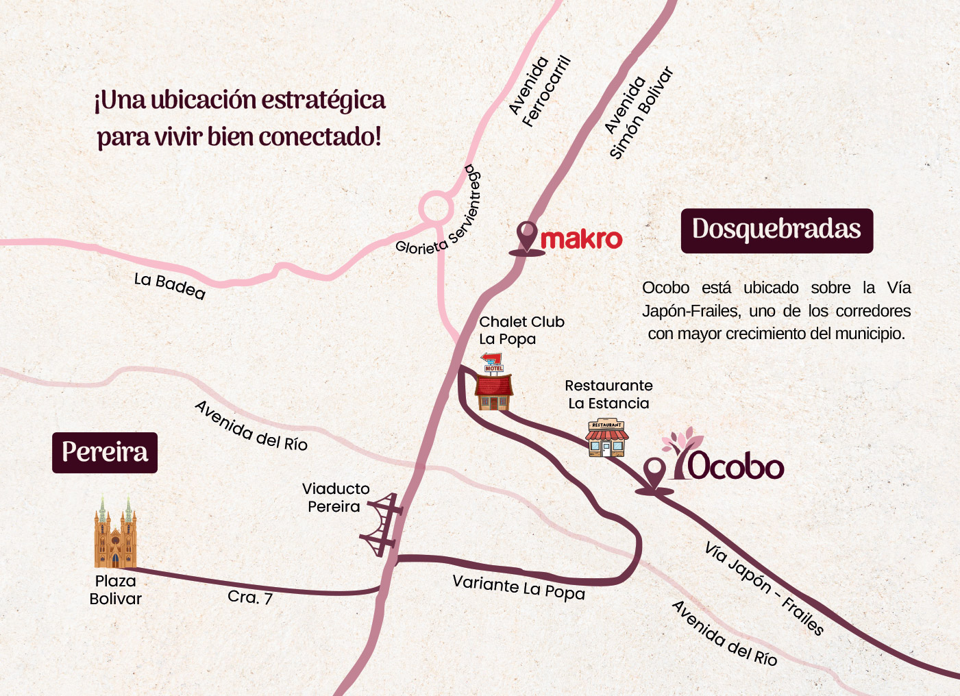 - Ocobo está ubicado sobre la vía Japón Frailes,